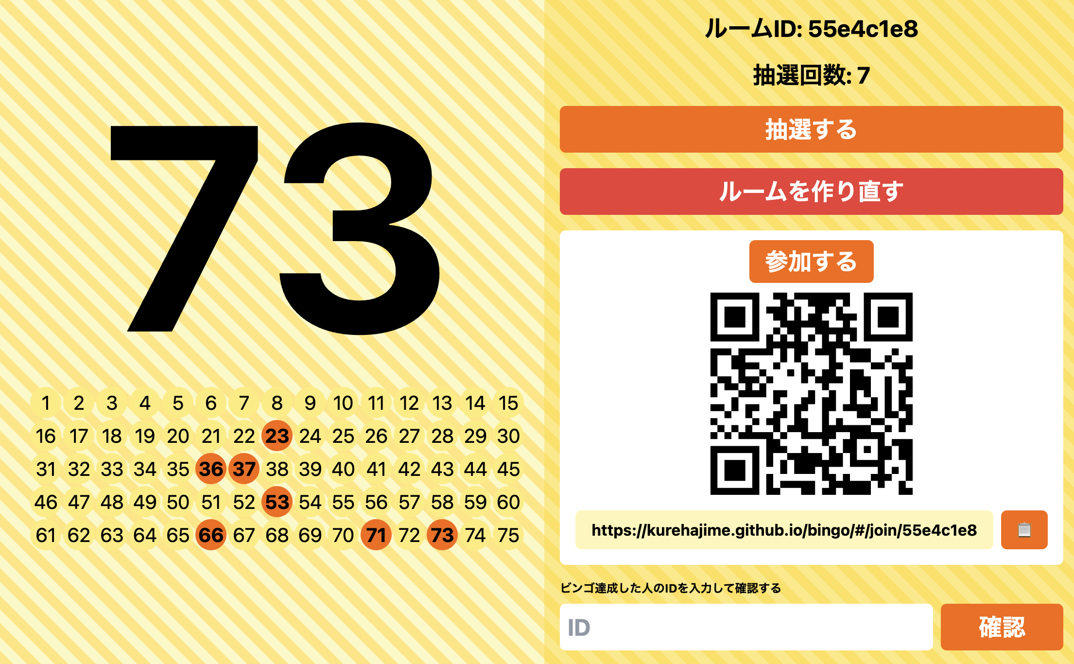 QRコードよんでブラウザで参加できるビンゴ