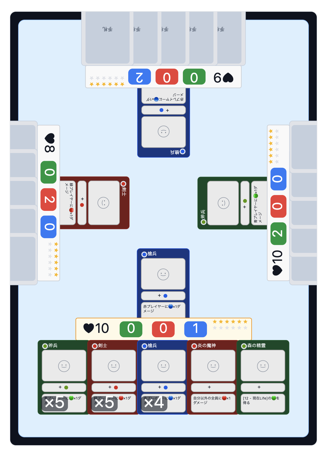 5枚のカードを使って戦う4人対戦のカードゲーム。